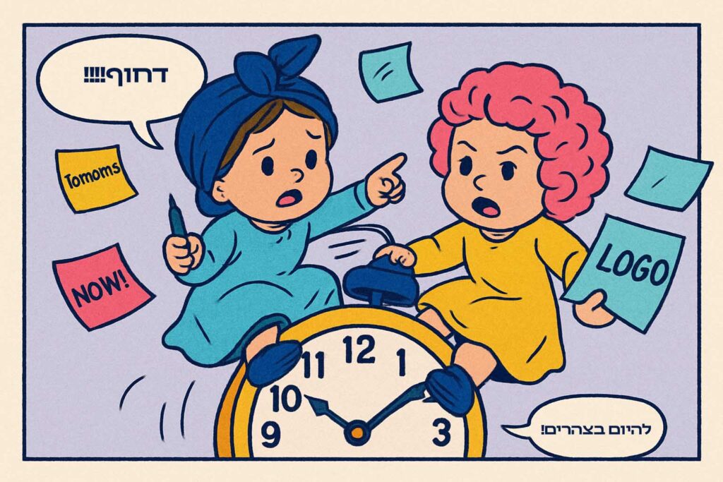 “אני צריכה את זה למחר בצהריים, לא, סליחה להיום בערב (עוד שעתיים)” –