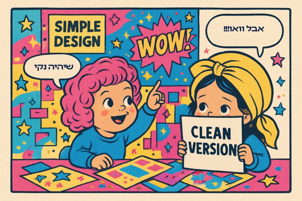 2. היא רוצה עיצוב ‘פשוט’, אבל עם חמישה צבעים, איור, טקסטים מחליפים וכמה אפקטים שיעשו “וואו”.