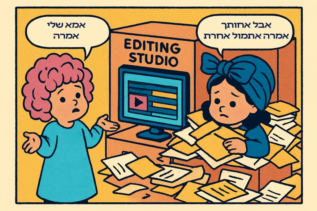 זה קלאסי. את שולחת סקיצה אחרי שעות של פרמייר או אפטר אפקטס,