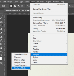 • לכי ל־Filter > Sharpen > Unsharp Mask